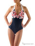 Слитный купальник с плотной треугольной чашкой и открытой спиной.