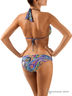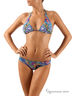 Изящный раздельный купальник. Бюст — подвижные чашки-треугольники из тонкого поролона, фиксируются галстучными завязками на шее и завязками-спагетти на спине. Классические плавки. Модель выполнена из итальянской ткани Eurojersey с ярким восточным принтом.