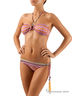 Стильный раздельный купальник. Бюст — бандо из тонкого поролона с дополнительной боковой поддержкой в виде кости, на тонких завязках, с эффектной фигурной пряжкой по центру и изящной застежкой на спине. Классические плавки низкой посадки с одного бока фиксируются плетеными завязками с удлиненными кистями. Купальник выполнен из итальянской ткани спокойных постельных тонов Eurojersey, которая не теряет своих качеств в соленой и хлорированной воде.