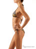 Сексуальный раздельный купальник-бикини. Бюст — подвижные треугольники из тонкого поролона, фиксируется завязками-спагетти на шее и спине. Плавки низкой посадки по бокам регулируются завязками. Купальник выполнен из итальянской ткани Eurojersey, принтованной красочными африканскими узорами