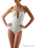 Слитный купальник с плотной чашкой. Бретели отстегиваются и можно завязать на шее. Купальник украшен элегантными металлическими заклепками