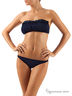 Богемный раздельный купальник. Бюст — бандо с чашками из тонкого поролона с отстегивающимися бретелями оригинальной формы с густой драпировкой из эластичной микросетки в тон купальника, которая визуально увеличивает объем груди. Фиксируется широкими завязками на спине. Классические плавки низкой посадки с узким боком. Купальник выполнен из итальянской ткани Eurojersey.