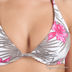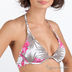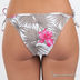 Яркий купальник "бикини" белого цвета с яркими тропическими цветами прекрасно будет смотреться на загорелой кожи.