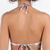 Завязывается на шее, спине и по бокам на скрученные бретельки. Треугольные мягкие чашечки на косточках идеально подойдет женщинам с большой грудью. Трусики слипы завязываются по бокам.
