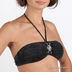 Лиф - бандо застегивается сзади на пластмассовую застежку и завязывается на шее. Трусики слипы завязываются по бокам.