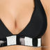 Лиф "халтер" завязывается на шее и спине. Он хорошо поддерживает грудь, плечи кажутся более широкими и уравновешивают полные бедра.