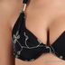 Элегантный классический купальник бикини украшен стильным золотистым принтом.