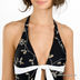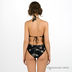 Шикарный купальник "пландж" зрительно удлиняет короткую талию и увеличивает грудь. Выполнен из эластичного, приятного на ощупь материала с элегантным бело-золотым принтом. Завязки на шее хорошо поддерживает грудь, плечи кажутся более широкими и уравновешивают полные бедра. Под грудью стильный белый бант.