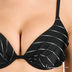 Шикарный и элегантный купальник "бикини". Лиф на косточках с эффектом push-up ( поролоновые уплотнители). Тонкие регулируемые бретельки. Застегивается на спине. Трусики слипы. Благодаря тонким белым полосам создается оптический эффект, увеличивающий грудь.