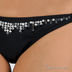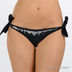 Бикини классического покроя. Лиф застегивается сзади на металлическую застежку. Формованные чашечки на косточках с эффектом push-up (поролоновый уплотнитель). Тонкие регулируемые бретельки.