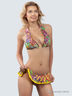 Превосходное бикини, выполненное в современном дизайне. Модель выполнена в яркой расцветке и декорирована рюшами. Отличный вариант для Вашего пляжного отдыха.
