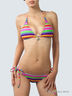 Эффектное бикини - стильный выбор для пляжного отдыха! Модель декорирована красочным принтом, который выгодно оттеняет загар. Лиф на спине и на шее завязывается на тонкие бретели, которые обеспечивают надежную фиксацию. Плавки-слипы комфортно сидят по фигуре, завязки по бокам. Эластичная ткань быстро сохнет, мягкие швы не натирают кожу.