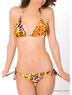 Эффектное бикини - стильный выбор для пляжного отдыха! Модель декорирована красочным принтом, который выгодно оттеняет загар. Лиф на спине и на шее завязывается на тонкие бретели, которые обеспечивают надежную фиксацию. Плавки-слипы комфортно сидят по фигуре, завязки по бокам. Эластичная ткань быстро сохнет, мягкие швы не натирают кожу.