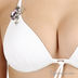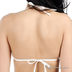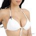 Оригинальный купальник из тонкого эластичного материала. Бюстгальтер с поролоновой чашкой, завязывается на спине и через шею. Трусы танга с завязками по бокам. Завязки дополнены оригинальными бусинами. Купальник декорирован оригинальным принтом.