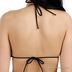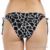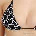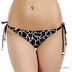 Оригинальный купальник из тонкого эластичного материала. Бюстгальтер с "чашками-шторками" со съемным поролоновым уплотнителем. Завязывается через шею и на спине . Декорирован металлической подвеской. Трусики танга с завязками по бокам. Купальник декорирован оригинальным принтом.