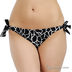 Оригинальный купальник из тонкого эластичного материала. Бюстгальтер на косточках с завязками через шею и на спине. Трусы танга с завязками по бокам. Купальник декорирован оригинальным принтом.