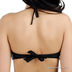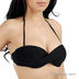 Оригинальный купальник из тонкого эластичного материала. Бюстгальтер на косточках с поролоновой чашкой, завязывается на спине. Дополнен съемными тонкими бретелями, которые завязываются через шею. Внутри кармашки для съемных вкладышей, которые идут в комплекте. Трусы бразильяны с вертикальным швом на задней части изделия завязываются по бокам.