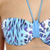 Оригинальный купальник из тонкого эластичного материала. Бюстгальтер балконет на косточках с поролоновой чашкой, с завязками на спине и через шею. Трусы слипы с завязками по бокам. Купальник декорирован оригинальным принтом - полоска.