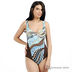 Оригинальный сплошной купальник из тонкого эластичного материала. Чашки на косточках. На спине вертикальный шов. Ластовица на подкладке. Спереди вставка с оригинальным принтом и золотистым напылением.