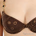 Оригинальный купальник из тонкого эластичного материала с оригинальными аппликациями. Бюстгальтер на косточках с поролоновой чашкой, на спине металлическая застежка. Внутри кармашки для съемных вкладышей, которые идут в комплекте. Тонкие бретели регулируются по длине, дополнены декоративными элементами. Трусы слипы.