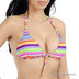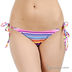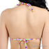 Оригинальный купальник из тонкого эластичного материала. Бюстгальтер с поролоновой чашкой, завязывается на спине и через шею. Трусы танга с завязками по бокам. Завязки дополнены оригинальными бусинами. Купальник декорирован оригинальным принтом.