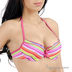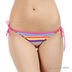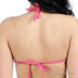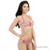 Оригинальный купальник из тонкого эластичного материала. Бюстгальтер на косточках с поролоновой чашкой, с завязками на спине и через шею. Внутри кармашки для съемных вкладышей, которые идут в комплекте. Трусы танга с завязками по бокам. Купальник декорирован оригинальным принтом.