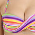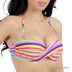 Оригинальный купальник из тонкого эластичного материала. Бюстгальтер балконет на косточках с поролоновой чашкой, с завязками на спине и через шею. Трусы слипы с завязками по бокам. Купальник декорирован оригинальным принтом - полоска.