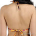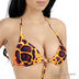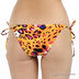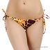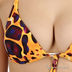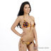 Оригинальный купальник из тонкого эластичного материала. Бюстгальтер с поролоновой чашкой, завязывается на спине и через шею. Трусы танга с завязками по бокам. Завязки дополнены оригинальными бусинами. Купальник декорирован оригинальным принтом.