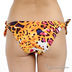 Оригинальный купальник из тонкого эластичного материала. Бюстгальтер на косточках с поролоновой чашкой, завязывается на спине и через шею. Трусы слипы с завязками по бокам. Купальник декорирован оригинальным принтом.