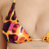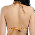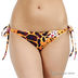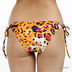 Оригинальный купальник из тонкого эластичного материала. Бюстгальтер с "чашками-шторками" со съемным поролоновым уплотнителем. Завязывается через шею и на спине . Декорирован металлической подвеской. Трусики танга с завязками по бокам. Купальник декорирован оригинальным принтом.