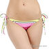 Оригинальный купальник из тонкого эластичного материала. Бюстгальтер с поролоновой чашкой, завязывается на спине и через шею. Трусы танга с завязками по бокам. Завязки дополнены оригинальными бусинами. Купальник декорирован оригинальным принтом.