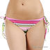 Оригинальный купальник из тонкого эластичного материала. Бюстгальтер с "чашками-шторками" со съемным поролоновым уплотнителем. Завязывается через шею и на спине . Декорирован металлической подвеской. Трусики танга с завязками по бокам. Купальник декорирован оригинальным принтом.