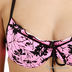 Оригинальный купальник из тонкого эластичного материала. Бюстгальтер на косточках с поролоновой чашкой, с завязками на спине и через шею. Внутри кармашки для съемных вкладышей, которые идут в комплекте. Декорирован оригинальным принтом. Трусы слипы декорированы вставкой с принтом.