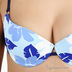 Оригинальный купальник из тонкого эластичного материала. Бюстгальтер на косточках с поролоновой чашкой, на спине металлическая застежка. Несъемные эластичные бретели регулируются по длине. Внутри кармашки для съемных вкладышей, которые идут в комплекте. Трусы слипы дополнены декоративной лентой. Купальник декорирован оригинальным принтом.