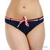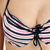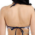 Оригинальный купальник из тонкого эластичного материала. Бюстгальтер балконет на косточках с поролоновой чашкой, с завязками на спине и через шею. Внутри кармашки для съемных вкладышей, которые идут в комплекте. Декорирован оригинальным принтом. Трусы слипы со шлевками, в которые продеты две тонкие эластичные ленты контрастного цвета.