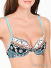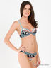 Оригинальный купальник из тонкой шелковистой эластичной ткани. Лиф push-up на косточках с поролоновыми чашечками застегивается на спине на металлическую застежку. Тонкие эластичные бретели регулируются по длине. Трусы слипы. Проймы и пояс на резинке, передняя часть и ластовица на подкладке. Купальник декорирован оригинальным принтом и стразами.