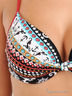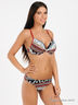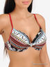 Оригинальный купальник из тонкой шелковистой эластичной ткани. Лиф push-up на косточках с поролоновыми чашечками застегивается на спине на металлическую застежку. Тонкие эластичные бретели регулируются по длине. Трусы слипы. Проймы и пояс на резинке, передняя часть и ластовица на подкладке. Купальник декорирован оригинальным принтом и стразами.