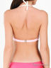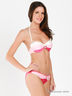 Оригинальный купальник из тонкой шелковистой эластичной ткани. Лиф балконет на косточках с поролоновыми чашечками с эффектом push-up. Застегивается на спине на металлическую застежку, съемные бретели завязываются на шее. Трусы слипы. Проймы и пояс на резинке, передняя часть и ластовица на подкладке. Купальник украшен оригинальными декоративными элементами.