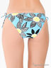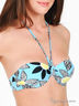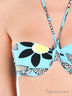 Оригинальный купальник из тонкой шелковистой эластичной ткани. Лиф балконет на косточках с поролоновыми чашечками, дополнен съемными вкладышами с эффектом push-up. Застегивается на спине на металлическую застежку, бретели завязываются на шее. Трусы слипы завязываются по бокам. Проймы и пояс на резинке, передняя часть и ластовица на подкладке. Купальник декорирован оригинальным принтом.