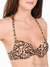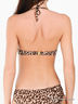 Оригинальный купальник из тонкой шелковистой эластичной ткани. Лиф push-up на косточках с поролоновыми чашечками застегивается на спине на металлическую застежку. Бретели завязываются через шею. Трусы слипы. Проймы и пояс на резинке, передняя часть и ластовица на подкладке. Купальник декорирован оригинальным принтом.