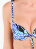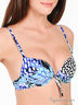 Оригинальный купальник из тонкой шелковистой эластичной ткани. Лиф push-up на косточках с поролоновыми чашечками застегивается на спине на металлическую застежку. Тонкие эластичные бретели регулируются по длине. Трусы слипы. Проймы и пояс на резинке, передняя часть и ластовица на подкладке. Купальник декорирован оригинальным принтом и стразами.
