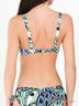 Оригинальный купальник из тонкой шелковистой эластичной ткани. Лиф на косточках застегивается на спине на металлическую застежку. Бретели регулируются по длине. Трусы слипы дополнены кулисками по бокам. Проймы и пояс на резинке, передняя часть и ластовица на подкладке. Купальник декорирован оригинальным принтом.