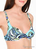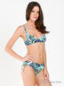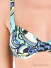 Оригинальный купальник из тонкой шелковистой эластичной ткани. Лиф на косточках застегивается на спине на металлическую застежку. Бретели регулируются по длине. Трусы слипы дополнены кулисками по бокам. Проймы и пояс на резинке, передняя часть и ластовица на подкладке. Купальник декорирован оригинальным принтом.