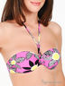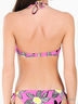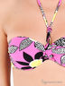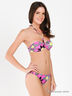 Оригинальный купальник из тонкой шелковистой эластичной ткани. Лиф балконет на косточках с поролоновыми чашечками, дополнен съемными вкладышами с эффектом push-up. Застегивается на спине на металлическую застежку, бретели завязываются на шее. Трусы слипы завязываются по бокам. Проймы и пояс на резинке, передняя часть и ластовица на подкладке. Купальник декорирован оригинальным принтом.