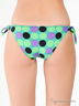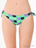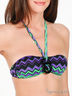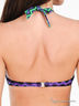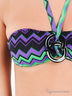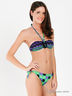 Оригинальный купальник из тонкой шелковистой эластичной ткани. Лиф с поролоновыми чашечками. Застегивается на спине на металлическую застежку, бретели завязываются через шею. Трусы танга завязываются по бокам. Проймы и пояс на резинке, внутри подкладка. Купальник декорирован оригинальным принтом.