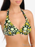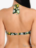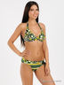 Оригинальный купальник из тонкой шелковистой эластичной ткани. Лиф на косточках застегивается на спине на металлическую застежку и завязывается через шею, чашки внутри на подкладке. Трусы слипы с оригинальным пояском спереди. Проймы и пояс на резинке, передняя часть и ластовица на подкладке. Купальник декорирован оригинальным принтом.