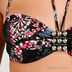 Плотный лиф на косточках. Лямки отстегиваются. Металлический декоративный элемент между чашек.