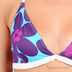 Мягкие треугольные чашки на косточках. Завязки на шее, металлическая застежка на спинке. Украшен принтами.