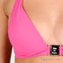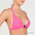 Плотные формованые треугольные чашки с push-up. Завязки на шее и спине. Декоративный металлический элемент между чашками.