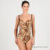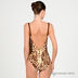 Слитный купальник. Плотные чашки на косточках. Бретели не регулируются. Яркий принт с вкраплениями золотой краски.
